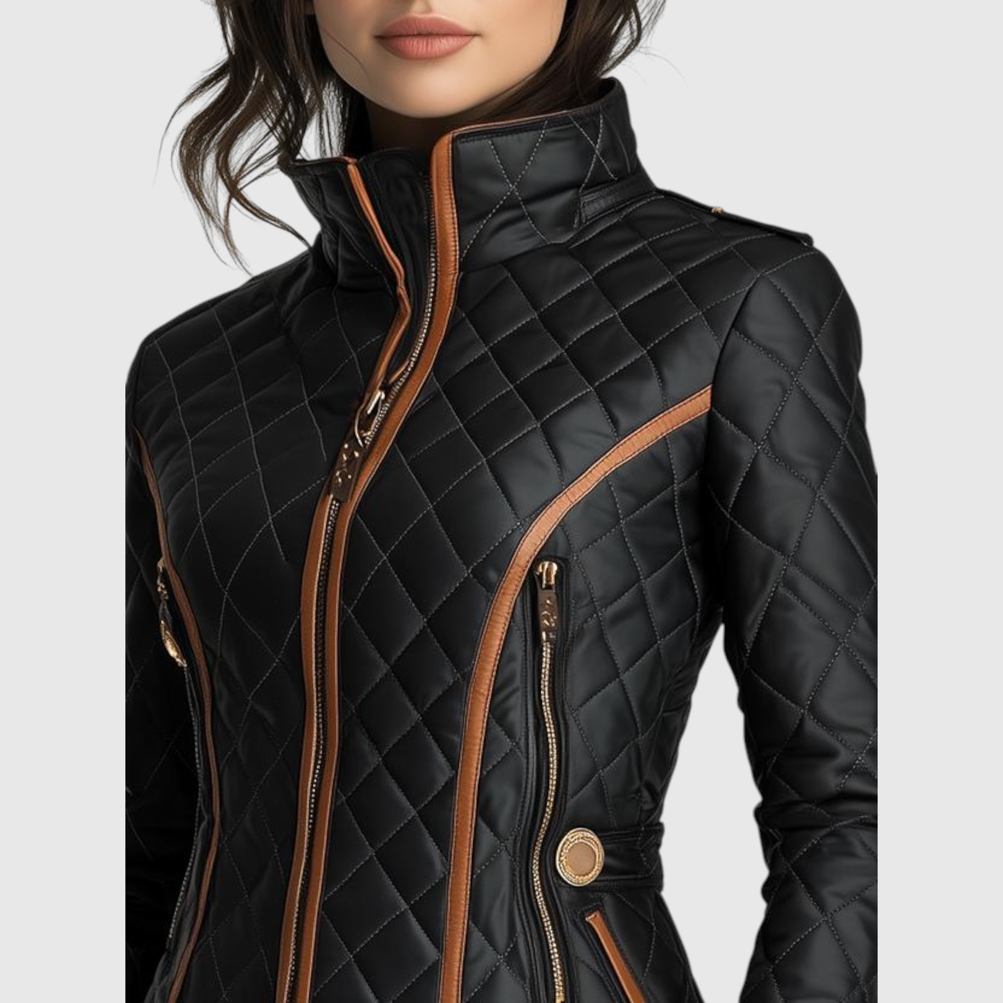 Modern bőrkabát övvel és cipzárral