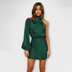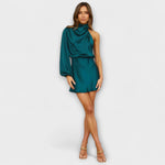 Finom elegancia modern árnyalattal — a Mara ruha lenyűgöz aszimmetrikus dizájnjával és lágy drapírozásával, amely elegánsan öleli körül a testet. Az egy vállú dekoltázs és a stratégiai drapírozás kifinomult és kényelmes megjelenést kínál különleges alkalmakra vagy felejthetetlen estékre.