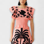 Stílusos ujjatlan felső pálmafákkal és trópusi madarakkal