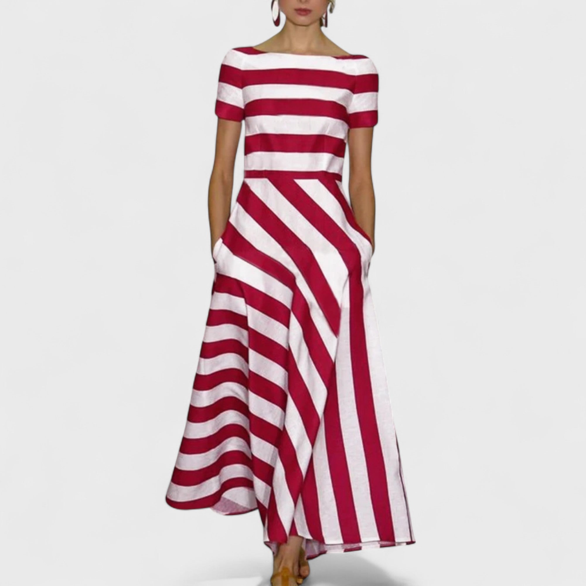 • Réteges csíkok & testhezálló derék – optikailag karcsúsítja a sziluettet, és finom grafikai eleganciát ad hozzá felesleges zaj nélkül.